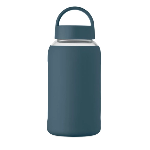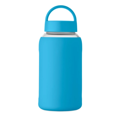 High borosilicate glass bottle with silicone pouch and PP lid with handle. Capacity: 600 ml