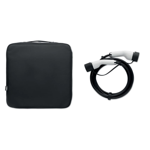Durable padded charging cable storage bag in 600D RPET with mesh inner compartments for on-board electric cars.