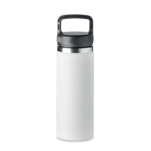 Double wall stainless steel vacuum insulated bottle with hook hanger on lid. Capacity : 500 ml.