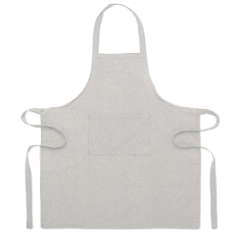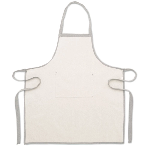 Adjustable kitchen apron with 1 front pocket in 220 gr/m² recycled cotton. 80% recycled cotton, 20% regular cotton.