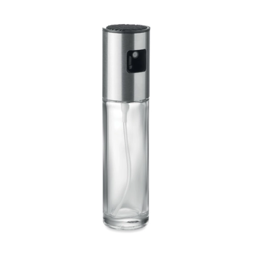 Glass oil dispenser spray with stainless steel lid. Capacity: 100 ml.
