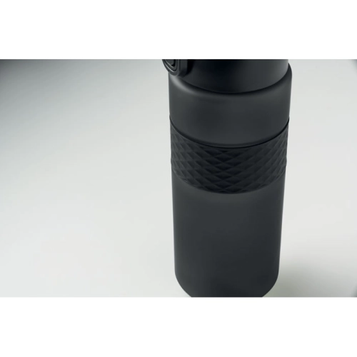 Drinking bottle made from RPET with silicone grip, PP flip-top lid and safety lock. Including integrated straw. Leak-free. Capacity: 700 ml.