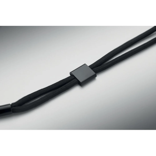 Adjustable phone cord holder wrist strap in RPET polyester. Length 25 cm.
