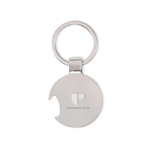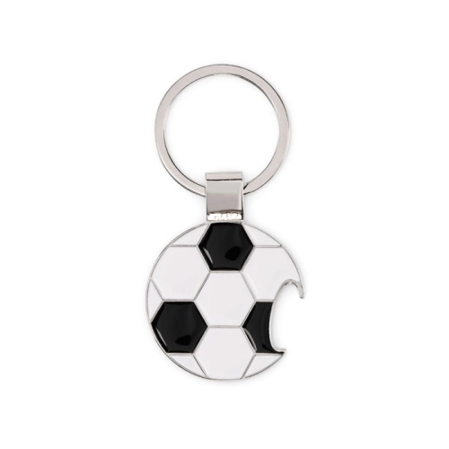 Football-shaped bottle opener keyring made of zinc alloy with iron ring.