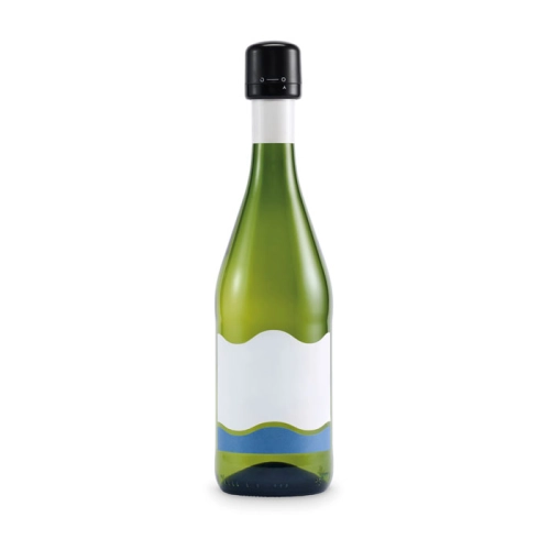 Bottle stopper made of recycled ABS for sparkling wine bottles. Features a turning lock mechanism and leak-free design.